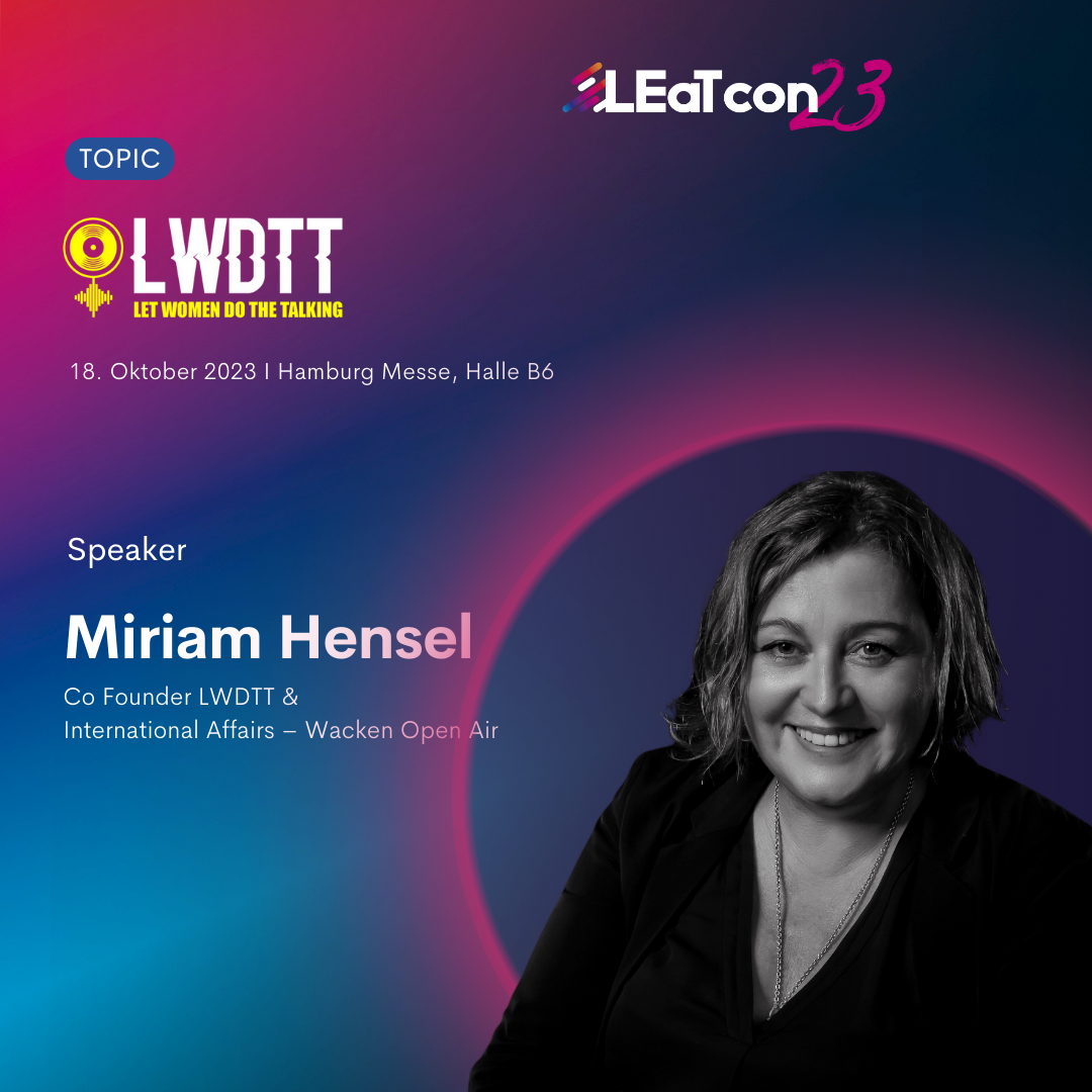 Miriam Hensel wird am 18. Oktober 2023 zu Gast auf der LEaT con in Hamburg sein und live eine LWDTT-Masterclass durchführen. Dabei wird sie spannende und kompetente Frauen der Veranstaltungsbranche zusammenbringen. Nicht verpassen: der 30-minütige Vortrag wird ab 10:45 Uhr auf der Mainstage der LEaT con stattfinden.