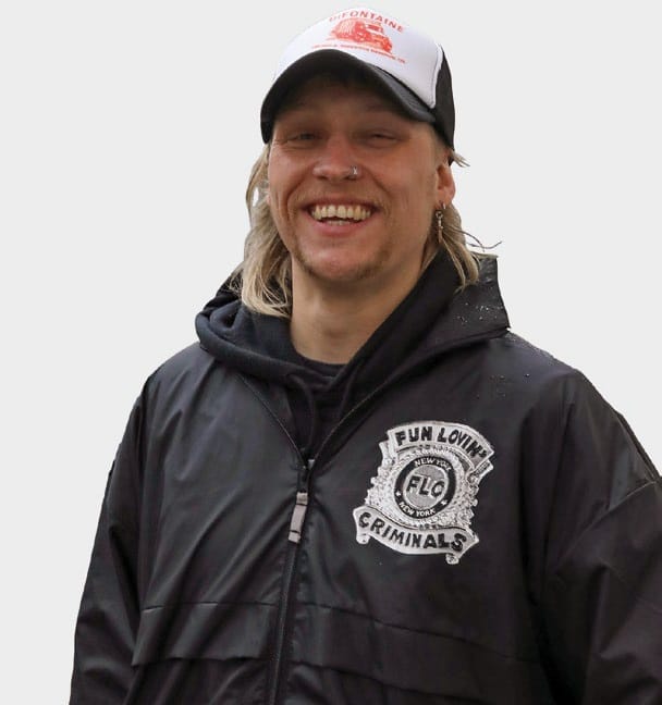 An dem Tag ist das in New York gegründete Trio Fun Lovin‘ Criminals zu Gast. Der Gig war vom Bürgerhaus Stollwerck, einem beschaulichen Gemeindezentrum in der Innenstadt, in die Baustelle verlegt worden. Die Band machte sich Mitte der 1990er Jahre durch eine eigenständige Mischung zwischen HipHop und Rock einen Namen; der Hit „Scooby Snacks“ enthielt neben Soundsamples auch lizenzierte Dialog-Ausschnitte aus Tarantino-Filmen. Ende der 1990er Jahre konnte die Band weltweit groß touren – unter anderem im Vorprogramm von U2. Seitdem wurde es ruhiger, die Band etablierte sich als unterhaltsame Club-Truppe. Keyboarder Brian „Fast“ Leiser spielt live auch noch Trompete, Mundharmonika, E-Bass, Synth-Bass mit Fußpedalen und ist für Loops und Backing Tracks zuständig – teils in Kombination. Seit dem Ausstieg von Sänger und Gitarrist Huey Morgan 2021 übernimmt er zudem einen Großteil der Lead-Vocals, im Wechsel mit Schlagzeuger Frank Benbini. Als Gitarrist ist Na‘im Cortazzi mit an Bord.