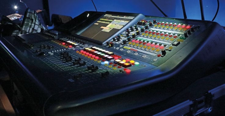 Insgesamt nutzt er 25 Kanäle. Die Gruppierung seiner Kanäle hänge vom Pult ab. Je nach Setup setzt er teilweise auf VCAs als gruppierte „Fader-Fernsteuerung“ und Subgruppen, die er mit Effekten versieht. „Ich habe hier einen Drum-Bus, für parallele Kompression, etwas mehr „Ooomph“, bei den Gesängen komme ich mit VCAs weg, dazu nutze ich Kick Drum, Snare und HiHat als VCA-Gruppe, als Haupt-Rhythmus-Elemente. Für die Toms habe ich separate VCA-Automation, da ich sie gerne höher ziehe. In manchen Songs werden sie auch nicht gespielt.“ Die E- und Synth-Bass-Signale sind als Gruppe zusammengefasst, Keyboards und Gitarren hat er ebenfalls gruppiert.