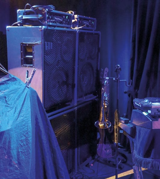 Als Gesangsmikrofon für Brian „Fast“ Leiser hat er ein Beyerdynamic TGV70 im Gepäck, das er für die Tour gekauft hat. „Sie hatten ein Sennheiser e935 verwendet, aber ich wollte eine etwas engere Charakteristik.“ Er wollte die Feedback-Resistenz optimieren. „Mit der hier vorhandenen Hyperniere ist das kein Problem, gerade auch, wenn Fast mal nicht unmittelbar vor dem Mikrofon einsingt.“ Die Trompete des Multi-Instrumentalisten nimmt er mit einem Shure Beta 98 H/C-Clipmikrofon ab.