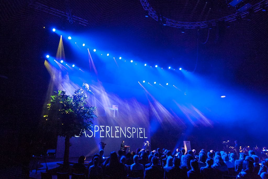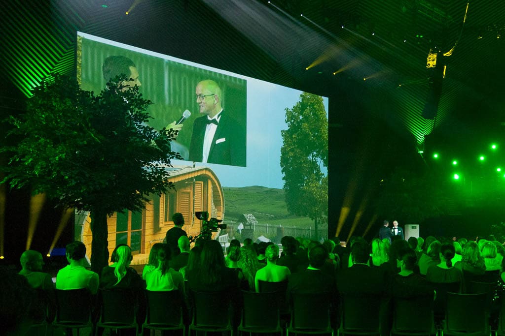 Die fotorealistische Welt verwandelte sich jeweils passend zu den Award-Kategorien und war ein wichtiger ShowBestandteil in diesem sehr abwechslungsreichem, modernen Bühnenbild. Überdies wäre der Aufbau einer Gartenhütte, mehrerer Windräder und eines Wasserfalls im Tempodrom sicher nicht so effizient und nachhaltig gewesen …