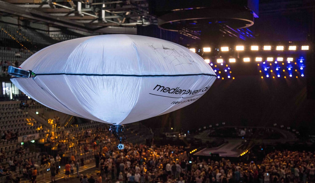 Nach diversen Messe- und Corporate- Events wurde das System jüngst von der Firma medienevent.de auf einem Konzert des Künstlers Udo Lindenberg in der SAP-Arena eingesetzt und lieferte beeindruckende Aufnahmen aus der Vogelperspektive. Aufgrund starker Turbulenzen durch die Lüftung und „heißem Publikum“ konnte allerdings nicht über dem vorderen Bereich der Halle geflogen werden: Bei starker Erwärmung der Halle setzte die Lüftung schlagartig ein und erzeugte dadurch unvermittelt eine sehr starke Thermik. Hier wäre ein Vorlauftag zum „Erfliegen“ der Halle vorteilhaft gewesen. Da die Heliumfüllung durch das zum Patent angemeldete Flugsystem bis auf eine vernachlässigbare und sehr niedrige Heliumdiffusion verlustfrei gehalten wird und der Ballon befüllt transportiert wird, war der Einsatz jedoch günstig und ohne langen Vorlauf möglich.