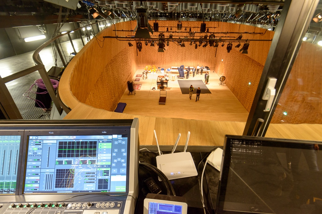 Kleiner Saal Blick von oben auf den umlaufenden Catwalk von der Regie aus (Bild: Peter Kaminski)