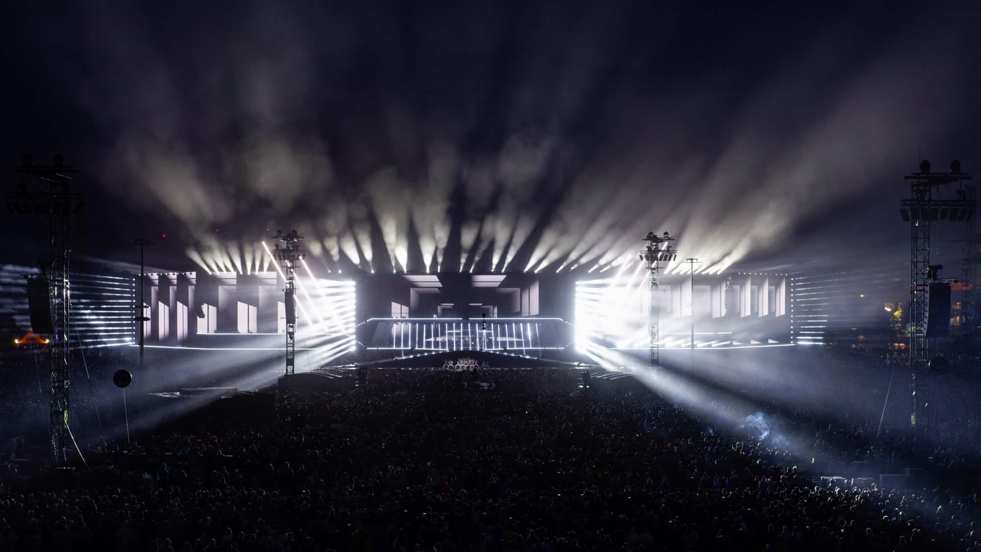 In einem sehr komprimierten Zeitraum mussten viele gut funktionierende Looks umgesetzt werden, die in der riesigen Dimension sowohl genügend Helligkeit als auch imposante Abwechslung bieten würden. Hinzu kam auch, dass die gigantische Bühnenlandschaft nicht viel Wetterschutz bot. Lediglich die Position, in der sich die Bands befinden würden, war regensicher. Dort bot eine 50 m lange Brücke genügend Schutz und so war es möglich Material einzusetzen, welches keine IP65-Zertifizierung besitzt.
