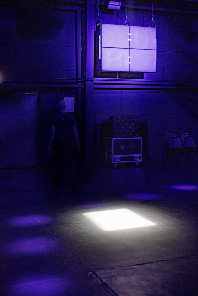 Im Spotlight Bei der Tech-Demo wurden die Flächen, in denen Sounds erlebbar wurden, mit Licht markiert. So konnte man in den fokussierten Audio-Beam treten und wieder heraus und einen Eindruck von der Präzision und Wirkung des Arrays gewinnen (Bild: Alexander Heber)