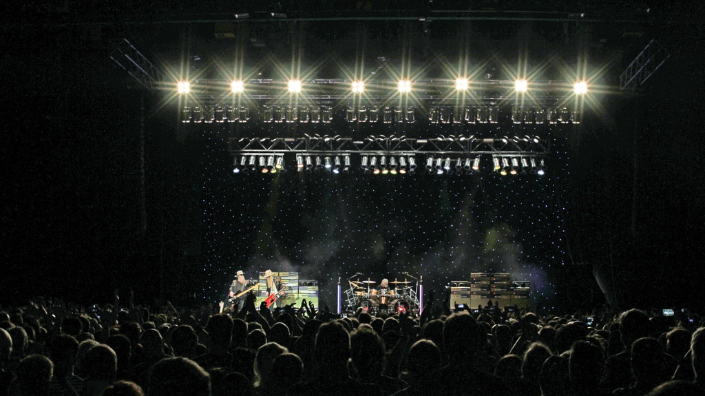 Bluesrock muss nicht zwangsläufig das blinde Beharren auf Traditionen bedeuten – zumindest nicht im Falle von ZZ Top: Das texanische Trio setzt auf teilweise getriggerte Drum-Sounds und reduzierte Bühnenlautstärke. Zudem lässt Gitarrist Billy Gibbons alle Gitarren über einen Analyzer einem „Frequenz-Ideal“ angleichen, Bass- und Gitarrensignale werden in Iso-Cabs mikrofoniert. FoH Jamie „J-Mo“ Rephann treibt dabei die Herausforderung umher, den Gain-before-Feedback-Pegel beim Gesang zu maximieren. Ein Besuch bei der Produktion im Sommer 2019