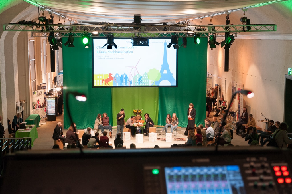 Einer der vielen Praxis-Test fand im Herbst 2015 auf einer Bühne der Klimakonferenz in Hannover statt, die in der Orangerie der Herrenhäuser Gärten stand. Geteilt wird der große, gewölbeartige Raum durch eine fest eingebaute Tribüne. Hinter der davor befindlichen Aktionsfläche für Diskussionen und Präsentationen war der Raum bei unserem Besuch in Hannover nochmals abgehängt, um eine Trennung zu einem belebten Ausstellungsbereich zu erhalten. Für diese Bühne hatte die Vater Tontechnik GmbH aus Hannover den Zuschlag erhalten, die schon die unterschiedlichsten Beschallungssysteme bis hin zu einer K-Array Anakonda im Einsatz hatte. Anlass für einen VIDA-Test war, dass Vater Tontechnik schon länger auf der Suche nach einem geeigneten Lautsprechersystem war, das auch in komplizierten akustischen Umgebungen – z. B. in Kirchen – eine hervorragende Sprachverständlichkeit leistet. Mit der Orangerie war eine spezielle Location gegeben, die das Team stets vor große Herausforderungen stellt. Durch einen Kontakt mit Jürgen Freitag entstand die Idee, VIDA in der Beta-Phase unter anderem in dieser Location zu testen. Neben dem Vorteil für den Dienstleister, das Produkt kennenlernen und testen zu können, ergab sich auch ein Vorteil für das Entwicklungsteam, das über Arne Muscheites von Kling & Freitag bei der Anwendung „im Ernstfall“ weitere Erfahrungen sammeln und die Rückmeldungen der Anwender einfließen lassen konnte.