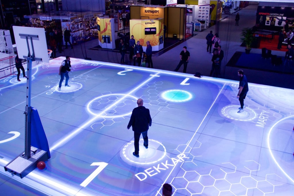 Mittels Tracking-Technologie können Spieler mit einer animierten Video-Spielszenerie interagieren. Dabei ist die Tracking-Technik nicht in den Boden implementiert, sondern unterhalb der Hallendecke installiert, als optisches oder Infrarot-basiertes Trackingsystem.