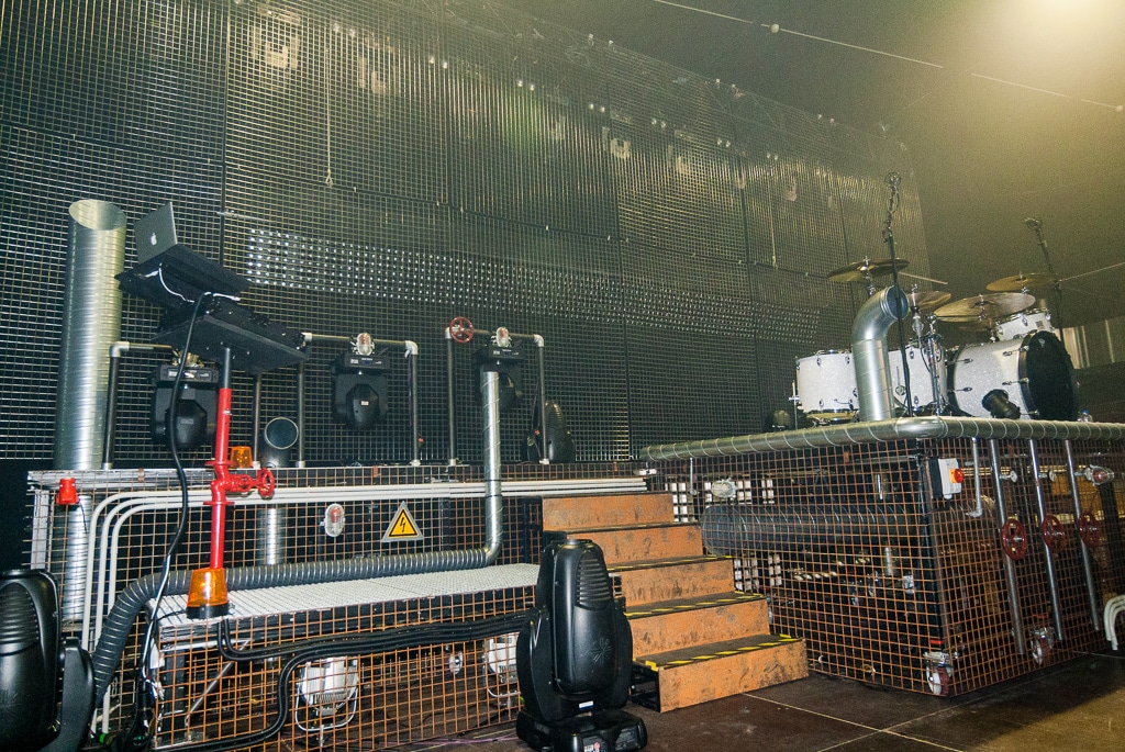 für Visuelles, für Abwechslung im Bühnenbild und er hat immer neue Ideen. Er wünscht sich gern unterschiedliche Sets und das zieht eben die Arbeit am Lichtdesign nach sich“, erklärte Martin Heining und ergänzte: „Wir wollten die Band also diesmal in einem Maschinenraum präsentieren und eine große Klammer um die Show setzen. Die vorherigen Designs wirkten gewollt kühl und klinisch kalt. Wir hatten beispielsweise einmal ein sehr silbriges und einmal ein sehr rotes, russisches Design. Im Gegensatz zu den bisherigen Bühnenbildern dürfte dieses Design wohl eher sehr schmutzig und abgerockt gewirkt haben.“