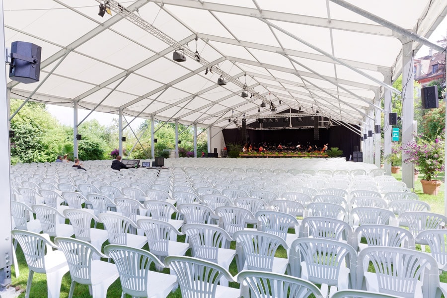 Zur Sommerzeit finden unter dem Zeltdach in unmittelbarer Nähe zum barocken Deutschordensschloss über zwei Monate hinweg Musikveranstaltungen statt. Beim Aufbau von Zelt und Beschallungsanlage sind auf der Insel diverse Denkmalschutzauflagen zu beachten, und selbstverständlich dürfen die liebevoll gehegten Rabatten, die täglich tausende Gäste auf die autofreie Insel locken, nicht beschädigt werden. Trucks können nicht direkt bis zur Location fahren, so dass Material für den Aufbau auf kleinere Fahrzeuge umgeladen werden muss.