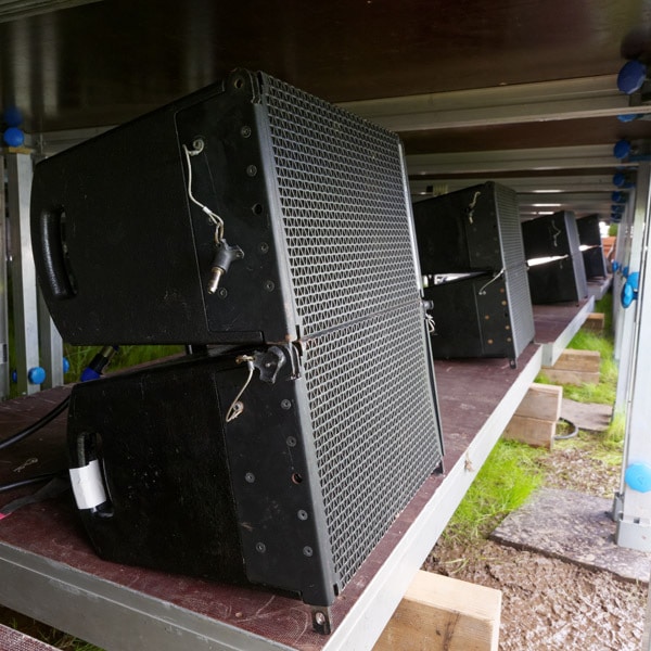 Thiel arbeitete für das Konzert mit mehreren Lautsprecherebenen: Richtungslautsprecher unter der Bühne bildeten die unterste Ebene, außen auf den Subwoofern aufgestellte Boxen die zweite, Line-Arrays und Center-Positionen die dritte und im Zeltgiebel montierte Lautsprecher die vierte Ebene. Außen rund um den Publikumsbereich montierte Kompaktlautsprecher formten die Nullebene. Die Verteilung der Signale übernahm die SpatialSound Wave Rendering-Engine, nachdem die Positionen der Lautsprecher in die zugehörige Software eingegeben worden waren. Da es sich um ein objektbasiertes Verfahren handelt, werden die einzelnen Signale nicht fest bestimmten Kanälen zugewiesen, so dass letztlich auf jedem Lautsprecher etwas anderes zu hören ist – die Lautsprechersignale sind per Definition dekorreliert, würde die Fachfrau sagen und More-Gain-before-Feedback implizieren.