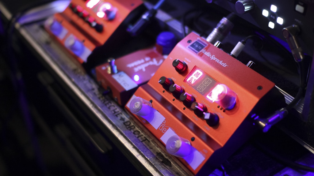 Für die akustischen Instrumente nutzt er Audio Sprocket ToneDexter Acoustic Preamps: „Das Gerät bearbeitet das Signal deines herkömmlichen Tonabnehmers: Es lässt sich ‚trainieren‘, indem du das Instrument parallel mit einem Mikrofon und dem internen Tonabnehmer abnimmst. Das Pedal ‚lernt‘ den Klang des Mikrofons und gleicht das Tonabnehmersignal dem Ergebnis möglichst gut an. Das Signal klingt ‚akustischer‘ und natürlicher.“