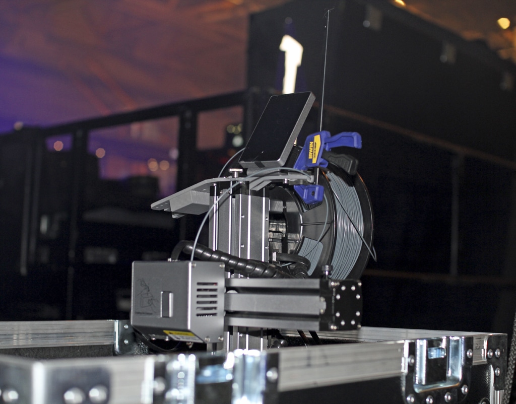 On Demand Tempany hat einen selbstgebauten 3D-Drucker im Gepäck, um z. B. passgenaue Steckerabdeckungen für Bühnen-Racks fertigen zu können (Bild: Nicolay Ketterer)