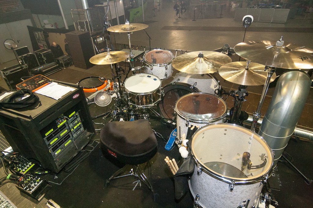 Das eingespielte Tonteam nahm die Subkick-Idee auf, machte sich an die Arbeit, um einen 6″-Speaker vor der Bassdrum zu positionieren. Das handelsübliche Car-HiFi-Modell brachte also road-taugliche Eigenschaften mit: „Wichtig dabei war, auf die untere Grenzfrequenz zu achten. Das Signal, das der umgebaute elektromagnetische Wandler liefert, liegt nun neben dem Signal des Beta 52 am Pult auf und wird hinzugezogen“, erklärte Jakob Bernhart.