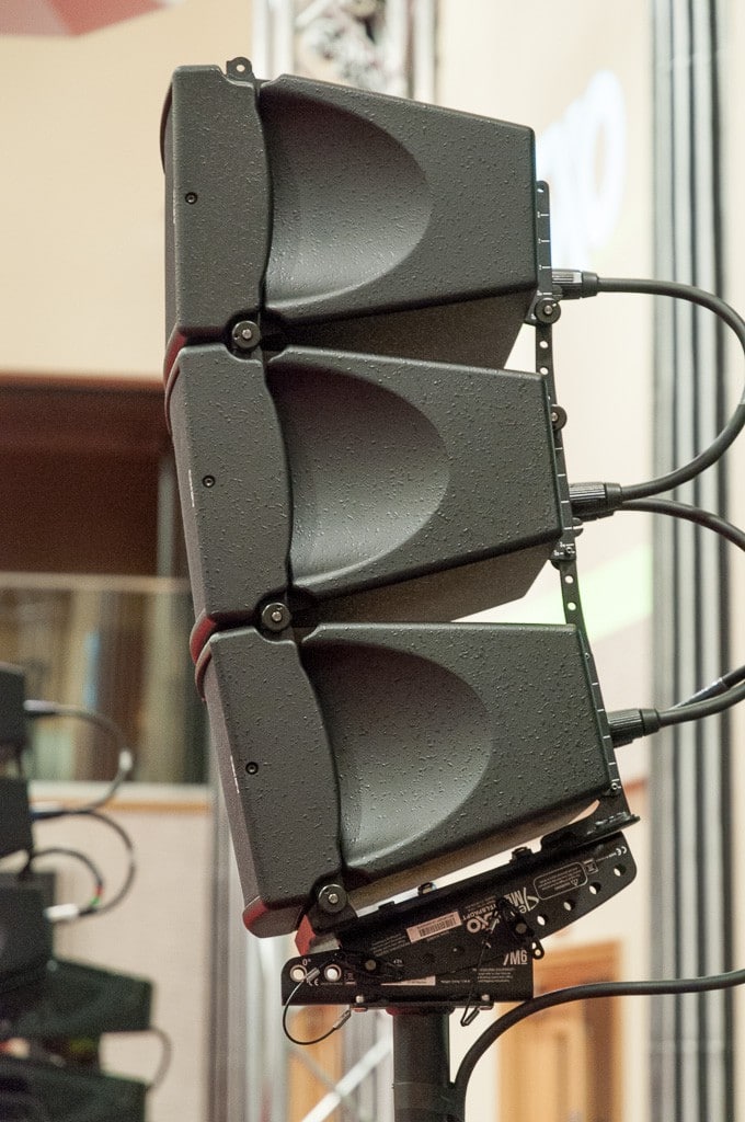 Applikationsbeispiel: drei STM M28 und ein STM B112 Bass Modul auf dem STM S118 Subwoofer (Bild: Detlef Hoepfner)