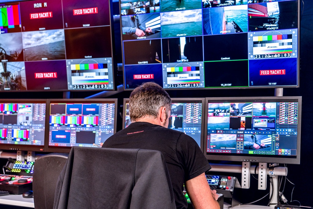 Thomas Riedel erinnert sich auch an viele Stolpersteine in Produktionsabläufen, die behoben werden können, wenn Event- und Broadcast-Produktion verschmelzen. Wie oft sei es vorgekommen, dass man merkt: Irgendwie geht es nicht los, aber niemand weiß Bescheid, selbst die Leute am Mischpult nicht. Hier waren jetzt Race Control, Regie, Event- Produktion, Sicherheitspersonal und alle Boote in einem System eingebunden – theoretisch war man zu jedem Zeitpunkt in der Lage, Teams zuzuhören. Oder zu sagen, ach der Kommentator sitzt heute mal mit im Helikopter. Es gab an jeder Stelle, wie auch den Begleitbooten oder dem Helikopter, eine Bolero-Zelle und der Kommentator setzte sich auf den freien Platz im Helikopter, drückte auf seine Taste und war voll eingebunden. Das wurde auch in alle anderen Bereiche übertragen. Es wurden also nicht nur Bilder für den Fernsehzuschauer produziert, um das Event zu verstehen, sondern auch sie waren Teil des Race Managements für die Judges.