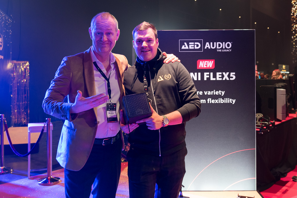 Glenn Roggeman, um ein selbstbewusstes Statement eh nie verlegen, fühlte sich auf der Jubiläumsbühne offensichtlich besonders wohl zwischen historischen AED Touring Compact und den ab 2020 gelaunchten Audiomodellen, entwickelt in Zusammenarbeit mit seinem Sohn.