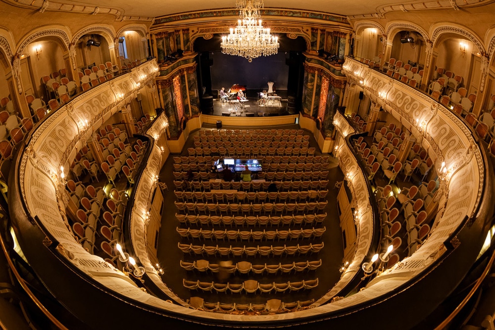 Probe im leeren Saal, dessen Form einer Lyra nachempfunden ist. (Bild: Jörg Küster)