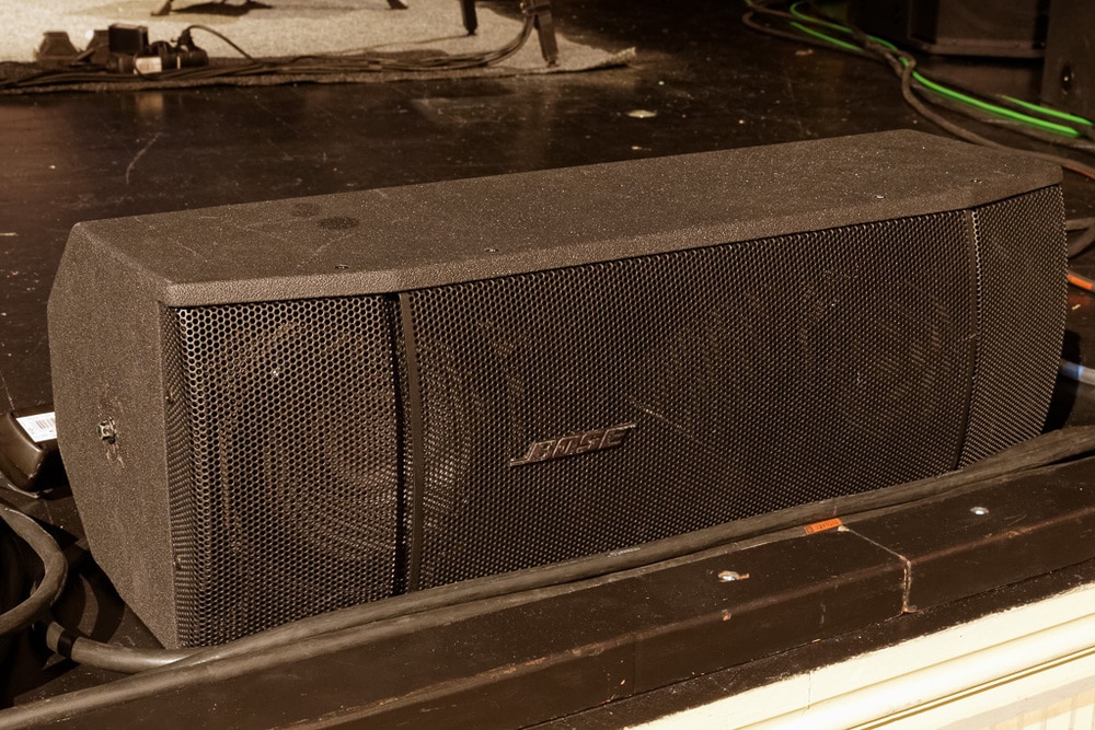 Für die oberen Ränge waren ergänzend zwei links und rechts oberhalb der Bühne geflogene RoomMatch-Module RM9020 (90 Grad horizontal, 20 Grad vertikal) vorgesehen, die an einem im Saal vorhandenen Handseilzug befestigt werden konnten. Im ersten Rang wurden zwei auf Hochständern platzierte Bose RMU 108 als „Balcony Delay“ zwecks Kurzstrecken-Auffüllung bis zum Greifen des Hauptmoduls ge – nutzt. Drei entlang der vorderen Bühnenkante verteilte RMU 208 (2 × 8″-Langhubchassis plus EMB2-Treiber an drehbarem 90 × 60-Horn) dienten als hinsichtlich des erwünschten Schalldruckpegels geeignete Nearfills. RMU steht als Akronym für „RoomMatch Utility“, und die hier zum Einsatz kommenden Hochtontreiber mit 2″-Titandiaphragma entsprechen den in den RoomMatch-Units verbauten EMB2- Kompressionstreibern.