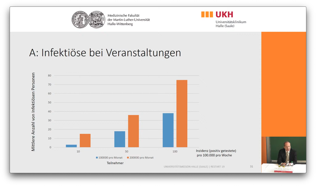 Infektiöse Inzidenz von 10, 50 oder 100 (100.000/200.000 pro Monat) (Bild: Universitätsmedizin Halle (Saale))