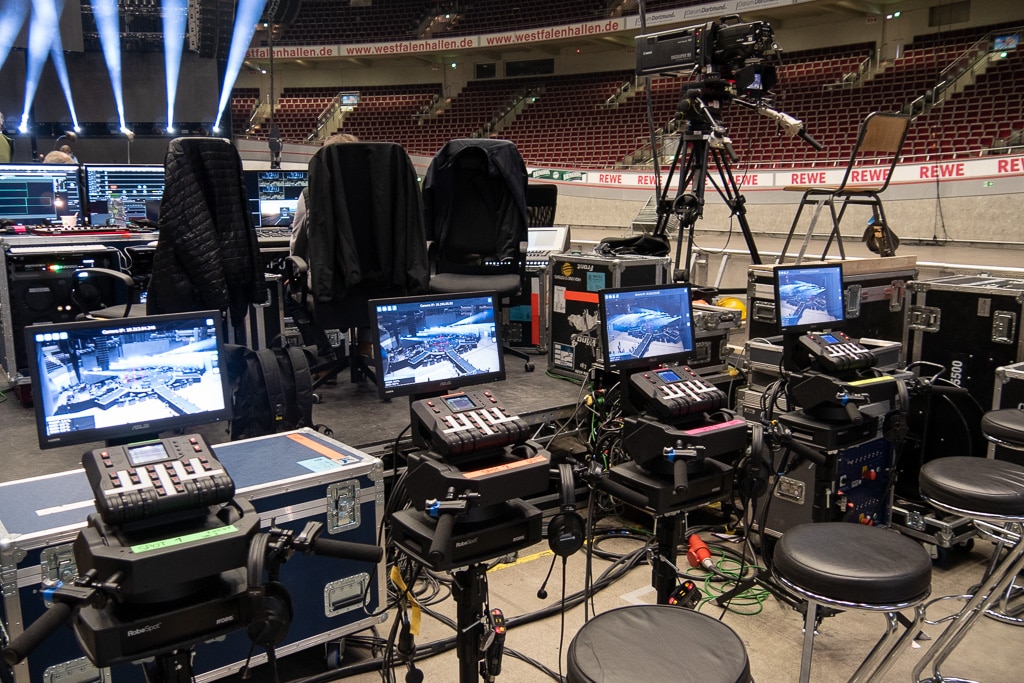 Wie schon auf der PUR-Tournee 2019 (Berichte: Lichttechnik und Beschallungstechnik bei der PUR-Tour 2019) erzielte das Team von Cue Design mit dem Einsatz der Robe-RoboSpot-Einheiten beste Ergebnisse während der Show. Zuvor hatte Gunther Hecker die Technik bei einem Sport-Event eingesetzt und auch das vergleichbare PRG-System bei einer Fanta4-Tournee erprobt. Der Vorteil bei den Robe Spots sei die Multispot-Funktion, die es ermögliche, mit einem Controller bis zu zwölf Lampen zu steuern, resümierte der Designer. Grundsätzlich werden mit den Remote-Einheiten nicht nur die Truss-Spot-Fahrer im Rigg überflüssig, sondern vor allem werden keine Zuschauerplätze in den Rängen blockiert.