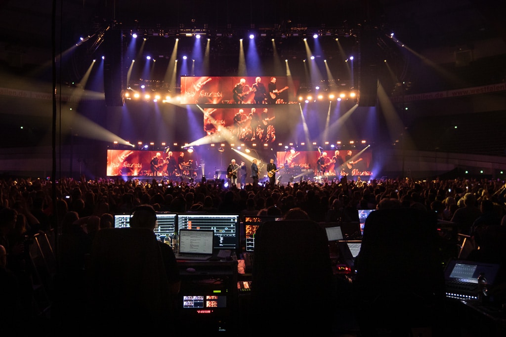 Als Herbert Grönemeyer spontan ein Lied einschiebt, das dem Publikum spürbar nicht versagt werden darf, servieren die Kreativen am FoH zur spontan gereichten „Currywurst“ rasch die passende optische und akustische Atmosphäre … fehlen eigentlich nur noch Schwager Willi und der herzhafte Duft aus einer waschechten Bochumer Pommes-Bude. Wenn Grönemeyer im Revier unweit des ehemaligen Postleitzahlengebiets 4630 Bochum auftritt, ist dies mehr oder weniger ein Heimspiel. Was diesen Abend für die Anwesenden einmalig und unvergessen gemacht haben dürfte, ist sicher auch auf die unverkrampfte Kommunikation zwischen Künstler und Publikum zurückzuführen. Ruhrpott eben. Ebenfalls zu erleben war aber auch das perfekte Zusammenspiel wacher und einfühlsamer Menschen, die die Konzerte technisch in ihren Händen halten – die jene einzigartigen TausendstelMomente erkennen, diese hervorheben, die Darbietung des Künstlers und seiner erstklassigen Band lesen und vergrößern. Und als die Westfalenhalle im Laufe des Abends spontan den 50er-Schlagerklassiker So ein Tag, so wunderschön wie heute anstimmte und der Künstler an seinem Klavier die vom Publikum angebotene Tonart ertastete, wurden die nötigen Regler kurzerhand gemutet, um sie dann, genau im Timing, mit dem Einstieg des passenden Akkordes freizugeben.