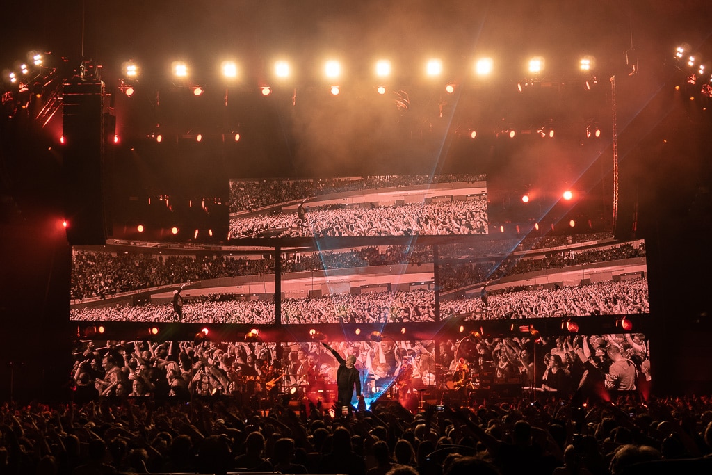 Das Ergebnis des Gesamtkonzepts war ein unaufgeregter, sehr ansprechender Rahmen – ein mehr als solider Grundstock für eine freundliche Pop-Show: eben Leichtigkeit für das Publikum. Nichts sollte unnötige Aufmerksamkeit erregen – oder gar ablenken. Der Designer und sein Team stellten den Sänger in den Mittelpunkt. Und zwar konsequent in jedem Moment während des gesamten Konzerts, das (wie in Dortmund) meist mit drei Stunden kaum auskam.