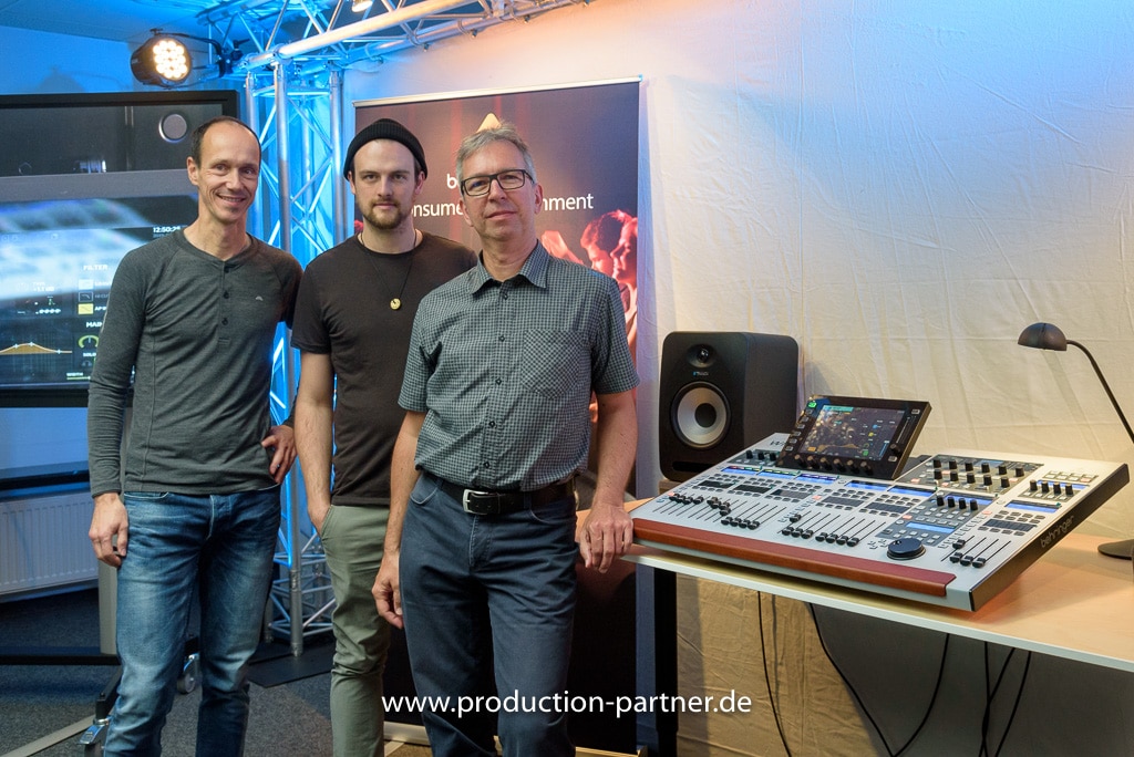 Neben Netzwerkbuchsen oder zwei AES50 gibt es aber nun noch eine neue Buchse namens „Stage Connect“: Das Protokoll, dass das Unternehmen demnächst auch offenlegen will, ersetzt das bisherige Ultranet, mit dem beispielsweise die kleinen Monitormischer P16 angebunden wurden. Stage Connect verbindet nun über ca. 20 Meter Geräte digital via ganz normales XLR-Mikrofonkabel (DMX-Kabel: 40–45 m). Und das jetzt bidirektional (32 CH, 18 Volt Spannung, 24 Bit, 48 kHz bei sehr niedriger Latenz) incl. Übertragungsmöglichkeit von Steuer-/Statusdaten. Das R&D verspricht sich hier ganze neue Verbindungsmöglichkeiten von Stageboxen, Mischpulten, Sideracks, In-Ears usw. und das Ende analoger Unterverteilungen auf der Bühne. Wer Ultranet am Wing weiter nutzen will, schließt seine P16 an den Ultramet-Buchsen seiner Stagebox (wie einer Midas SD8) an. Langfristig wird es auch eine Converter-Box Stageconnect-Ultranet geben.