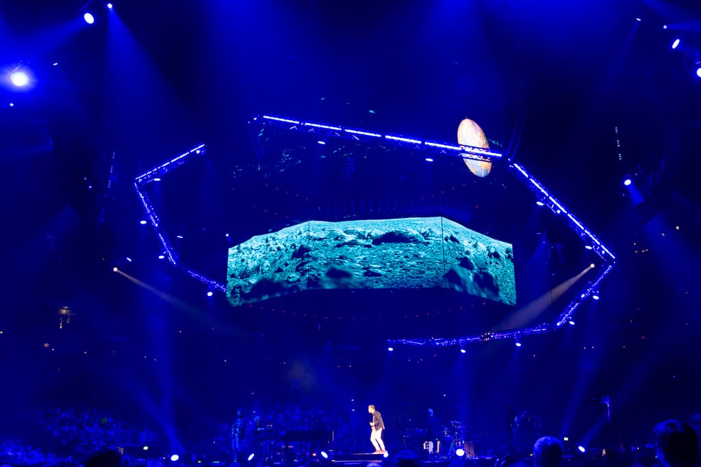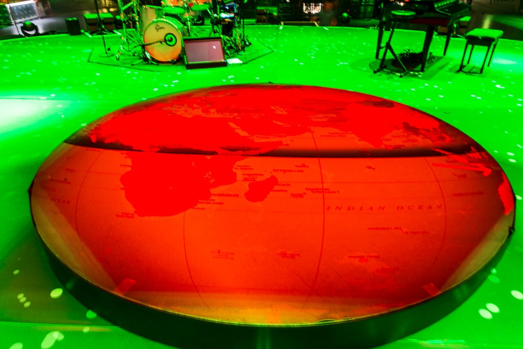 Nur von den oberen Rängen aus ließ sich erkennen, dass das Podest in der Bühnenmitte mit einem Teppich überzogen war, der den Globus aus dem Album-Booklet abbildete.