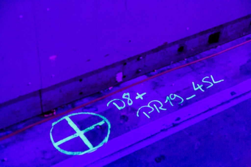 EinmessenEin weiteres Hilfsmittel aus anderen Bereichen ist der Spektra-Laser, der mit wenig Aufwand die genauen Rigging-Punkte auf dem Boden anzeigt. Diese wurden hier bereits markiert. (Bild: Lena Voss)