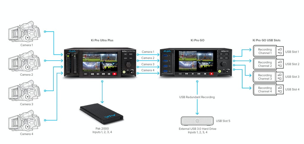 Vorgeschlagener Workflow von AJAin Verbindung mit Ki Pro Ultra Plus (Bild: AJA)