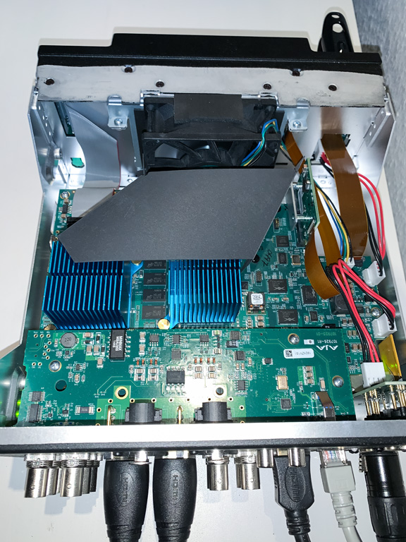 Dem allzu oft vorgekommenen Überhitzen der ersten Ki Pro wirkt nun ein Lüfter direkt hinter dem LCD-Display entgegen, der sich beim Einschalten kurz laut zu Wort meldet, aber bei normaler Umgebungstemperatur auch sofort wieder verstummt. Das Kühlkonzept scheint hervorragend; auch in einem 24-Stunden-Test mit High-Quality-Aufnahme auf allen fünf Ports blieb die Maschine nur handwarm und der Lüfter lautlos.