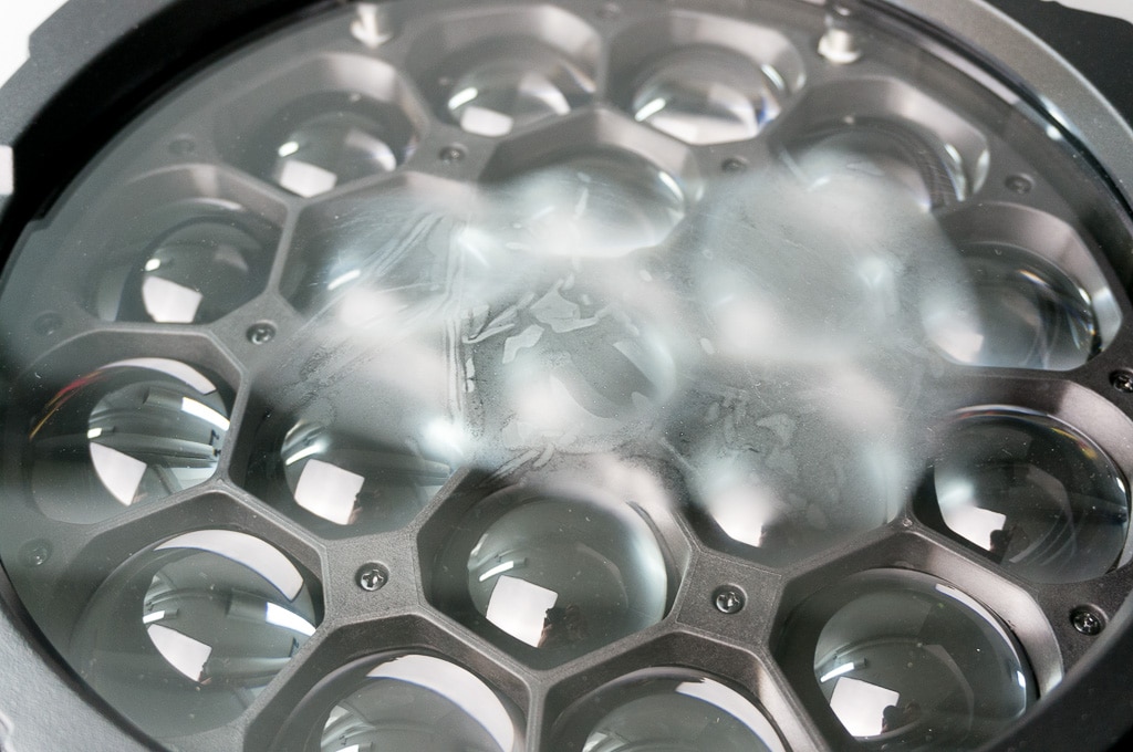 Innenatmosphäre Im Dauerbetrieb lief bei unserem Testgerät die Frontscheibe an, aufgrund der IP-Bauweise kann hier zwar keine Nässe eindringen, die entstandene Kondensationsfeuchtigkeit aber auch schwerlich entweichen (Bild: Stefan Junker)