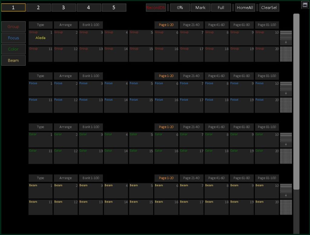 Zur Verfügung stehen vier Effektarten, die sich in Chase-, Content-, Dynamic- und Image-Effekte unterteilen. Im Gegensatz zu dynamischen Effekten ohne Bezug zu festgelegten Inhalten spielen Content-Effekte dabei eine definierte Serie an Attributpaletten ab, wie etwa eine Abfolge aus Farben oder Positionen. Weiterhin lassen sich in dynamischen und Content-Effekten sehr praxisorientiert sogenannte „Channel Sets“ definieren, also individuelle Scheinwerfer-Reihen, wenn das automatische Grouping keinen Sinn macht, beispielsweise eine Abfolge von 10 ¥ Fronttruss, 8 ¥ Midtruss, 12 ¥ Backtruss und 4 ¥ Floor.