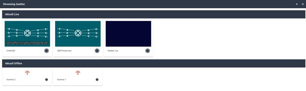 Streaming-QuellenAlle angelegten, einkommenden Stream-Signale erscheinen in einer Multiviewer-Übersicht (Bild: Contentflow)