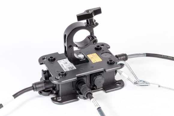 Zurzeit sind drei Typen der IP 65-Unterverteiler mit der Steckvorrichtung Powercon True 1 Top L erhältlich: Beim CPVT7RT handelt es sich um den Power Turtle XO, mit einem Eingang und sieben Abgängen. Die Ausgänge sind rundherum um die Box angeordnet – das ist gut, um sternförmig zu verteilen.