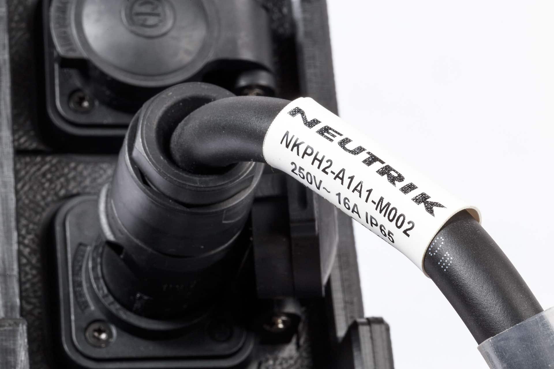 Die Robustheit, Dichtigkeits- und Widerstandsfähigkeit des Gehäuses ist aber nur die halbe Miete, wenn man von hier aus mit Schuko-Steckverbindern weiterarbeiten würde: Richtig rund wird das System, wenn man zum Unterverteiler auch die richtige Steckvorrichtung mit dem richtigen Kabel verwendet. Neutrik hat schon früh mit dem Powercon erfolgreich einen Steckverbinder in der Veranstaltungsbranche eingeführt, mit dem eine zuverlässige Verriegelung der Steckverbinder möglich war. Er findet sich in fast allen professionellen Geräten, die ständig auf und abgebaut werden, wieder. Die Kaltgerätesteckverbinder hat er bei dieser Klasse von Geräten verdrängt. Der Nachteil des Powercon war hauptsächlich, dass er nicht unter Last gezogen werden durfte.