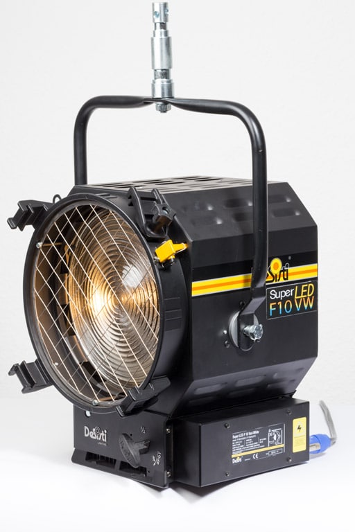 Der Studio-Linsenscheinwerfer Super LED F10 VW Vari-White des italienischen Herstellers DeSisti soll durch moderne technische Maßnahmen auf einer bewährten Basis eine besonders hohe Lichtqualität erreichen.
