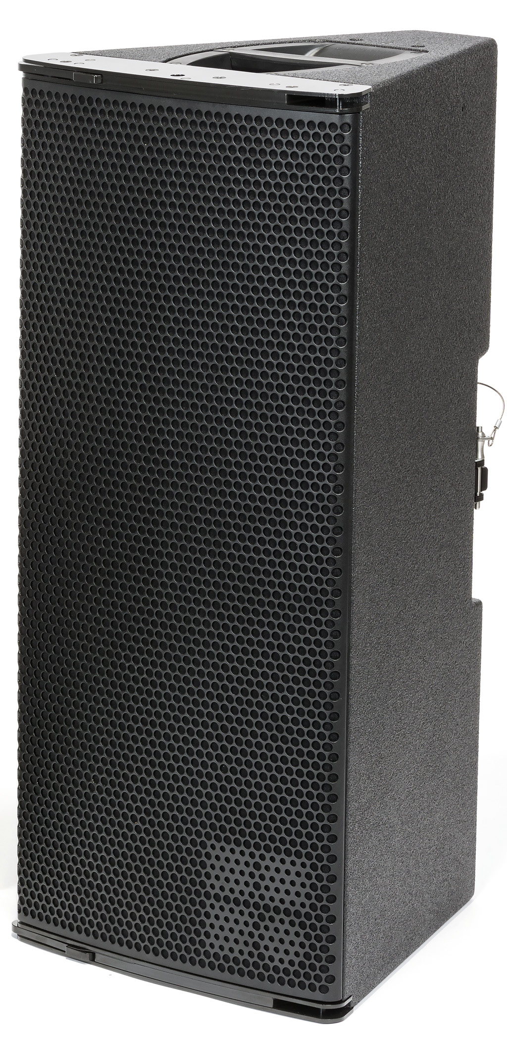A-Serie nennt sich das neuste Produkt der d&b audiotechnik. Das „A“ lässt sich mehrfach interpretieren – „Adapt“, „Adjust“, „Augment“ oder „And more“. Bei der A-Serie hat man es mit den zwei Lautsprechermodellen AL60 und AL90 zu tun, die jeweils mit zwei 10“-Tieftönern und einem 1,4“-Hochtontreiber bestückt sind. Die Zahl in der Typenbezeichnung bezieht sich auf den horizontalen Öffnungswinkel, wenn man die Box quer liegend betrachtet, der dann 60° oder 90° beträgt und ab 550 Hz bzw. 370 Hz aufwärts erreicht wird. In der Vertikalen beträgt der Abstrahlwinkel 30°, der hier mit Hilfe eines speziellen Doppel-Y Waveguides zur Formung einer gekrümmten Linienquelle erreicht wird. Das trapezförmige Gehäuse ist nach hinten schmal zulaufend konstruiert, womit Box zu Box Splay-Winkel von bis zu 40° möglich werden. Die Dreipunkt-Mechanik ermöglicht dazu Einstellungen von 20° bis 40° in 5° Schritten. Mit zwei AL60 oder AL90 lassen sich also Arrays mit vertikalen Öffnungswinkeln von 50-70°, mit dreien von 70-110° und mit vieren von 90-150° zusammenstellen.