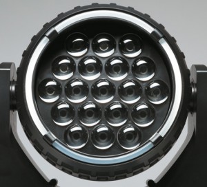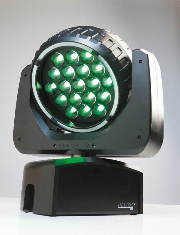 Dieses neue Multifunktions-LED-Washlight unterscheidet sich im nicht eingeschalteten Zustand und aus einiger Entfernung betrachtet äußerlich erst mal überhaupt nicht von artverwandten Geräten anderer namhafter Hersteller. Aus der Nähe betrachtet, sticht dann jedoch sofort ein prägnantes Merkmal des Helios+ 19Z ins Auge; dieses sorgt in Form eines Leuchtbands, das, in vier Segmente unterteilt, den Strahlenaustritt des Gerätes umgibt, bereits ohne anliegende Netzspannung schon mal für Aufmerksamkeit. Aber dazu später mehr.