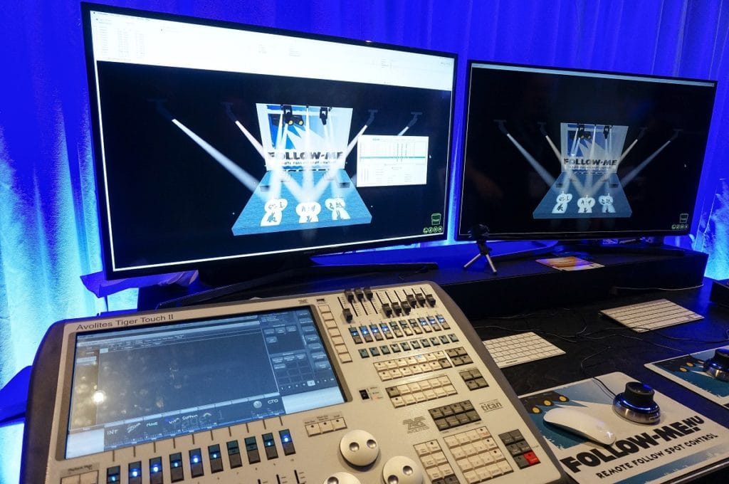 Die Unterhaltung zwischen Remote-System und Scheinwerfer basiert dabei auf DMX beziehungsweise ArtNet, wodurch eine sehr einfache Integration in bestehende Lichtsysteme möglich ist. Weiterhin ist so auch die Übernahme der vollen Kontrolle mittels Lichtkonsolen zu jeder Zeit möglich, um Scheinwerfer beispielsweise im Intro als Showlicht, später dann als Follow zu verwenden. Als Besonderheit lassen sich bei „Follow-Me“ mit nur einem System mehrere Ziele definieren und gleichzeitig verfolgen sowie die Bewegungen als PSN-Daten ausgeben, um diese in einer Lichtkonsole weiter zu verarbeiten.