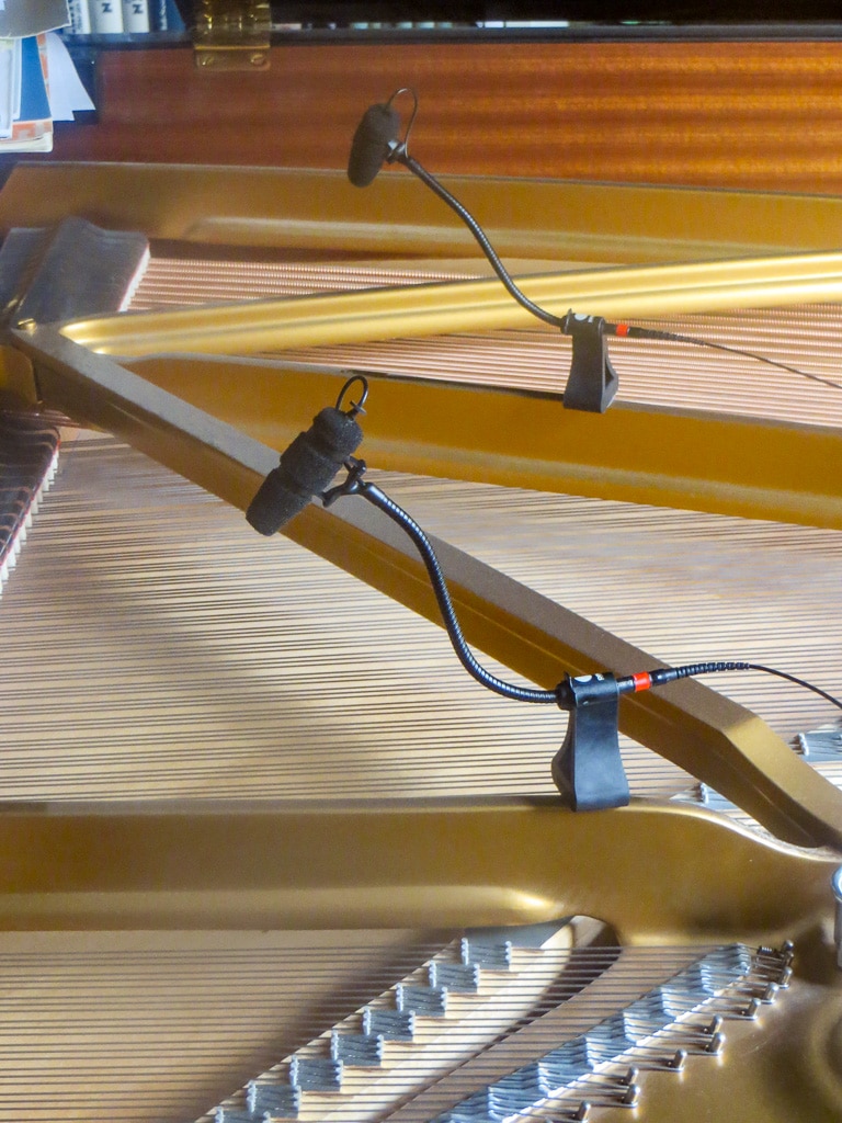 Zum Test der Mikrofone stand uns ein Steinway-Flügel B-211 zur Verfügung. Häufig wird dieser als „der perfekte Flügel“ bezeichnet. Und obwohl das natürlich Marketing-Talk ist, handelt es sich auf jeden Fall um ein sehr hochwertiges und nuancenreiches Instrument, das aufgrund seiner reichen Skala an Klangfarben und seines lebendigen Tons bestens für Studios und mittlere Veranstaltungsräume geeignet ist – eine anspruchsvolle Aufgabe für jedes Mikrofon.