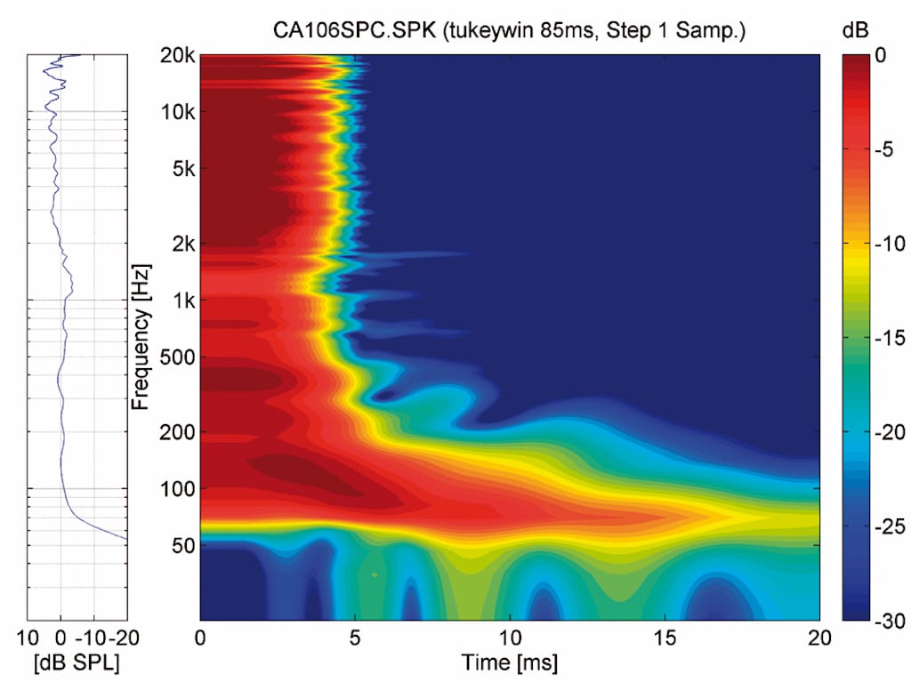 Gutmütig und resonanzarm stellt sich auch das Spektrogramm in Abb. 8 dar, in dem es keine auffälligen Resonanzen gibt. Insbesondere der Hochtöner fällt durch ein makelloses Ausschwingen bis 20 kHz auf, wo eine Kalotte ohne Kompressionskammer dann ihre Vorzüge ausspielen kann.