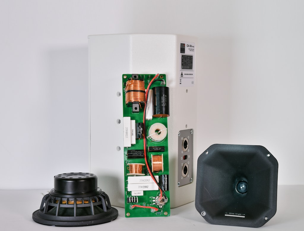 Komponenten der Kling & Freitag CA 106 Pro: 6,5″-Tieftöner von Sica, das Hochtonhorn mit einer Kalotte, passive Weiche mit Schutzschaltung (Bild: Anselm Goertz)