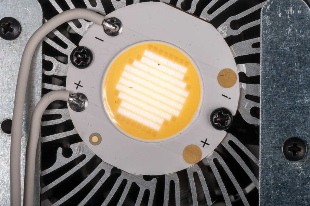 LED-Array90 W Weißlicht-LED-Array des Dayled 1000 auf dem Kühlkörper (Bild: Herbert Bernstädt)