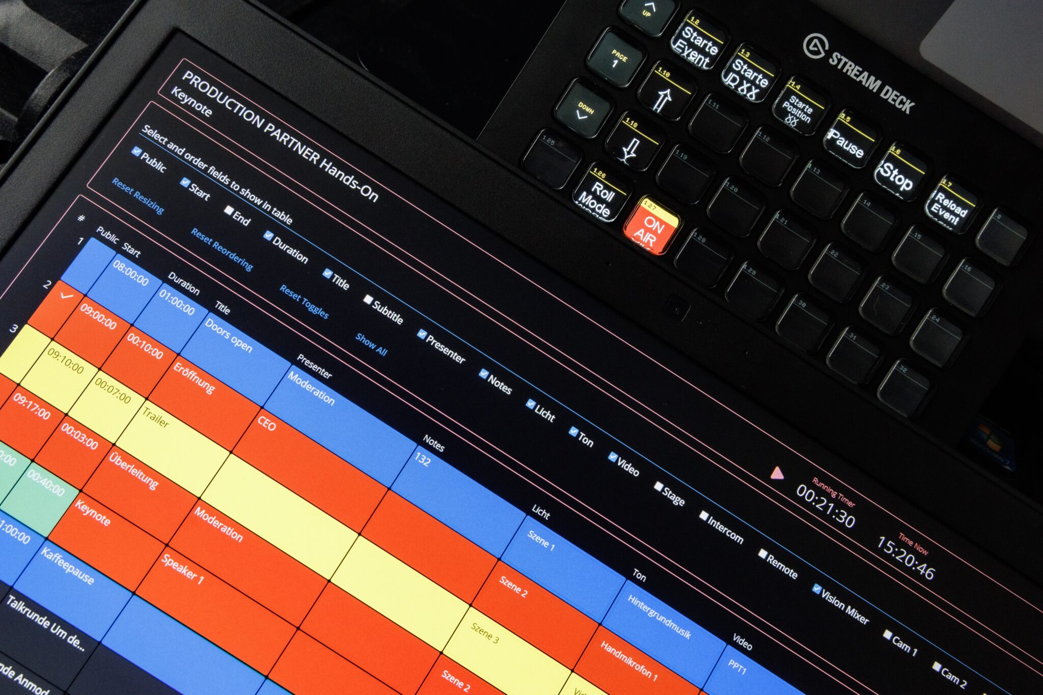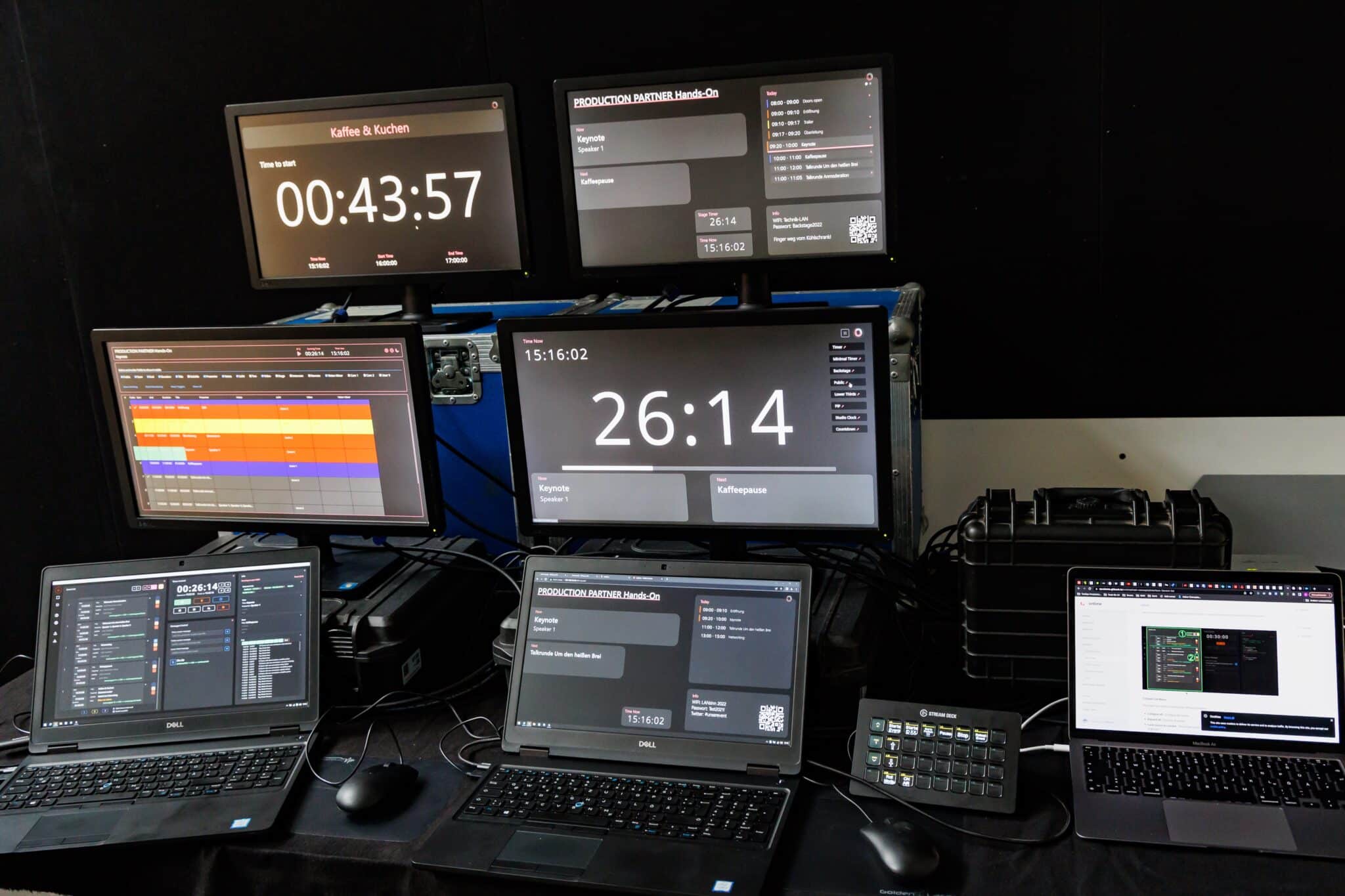 „Hat jemand meinen Ablaufplan gesehen? Das ist noch Version 14 von den Proben gestern, aber da stehen meine Notizen drin!“ So oder so ähnlich hört man es häufig auf Veranstaltungen. Reihenfolgen, Inhalte und Zeiten ändern sich oft schneller, als ein Drucker aktualisierte Pläne auswerfen kann. Zusätzlich müssen die Powerpoints mit der Agenda, die Reihenfolge von Bauchbinden, Notizen und Redezeituhren angepasst werden. Diese organisatorische Lücke zwischen Abläufen und der Kommunikation von Timings und Änderungen übernimmt Ontime.