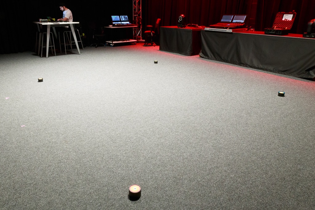 Damit nun das Programm En-Scene die Lautsprecherwege so ansteuert, dass der Zuschauer die Position der Künstler akustisch orten und Bewegungen verfolgen kann, wird natürlich auch deren aktuelle Position benötigt. Und hier kommt das Zactrack-System zum Einsatz. Es übermittelt die Positionsdaten per OSC via Ethernet an die En-Scene-Software. Die wiederum füttert entsprechend die DS100 Matrix.