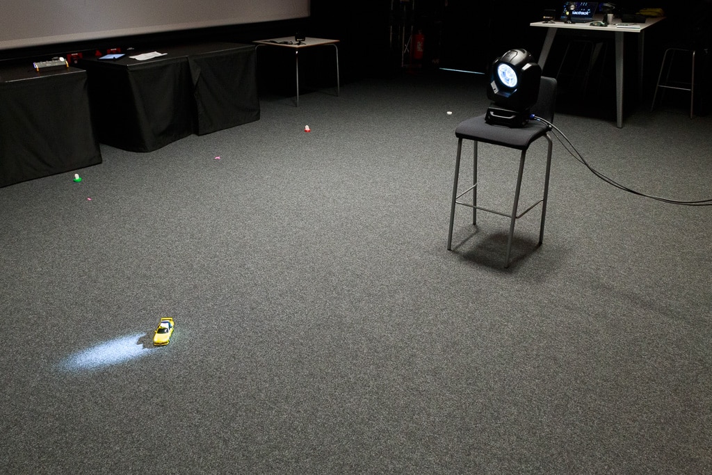 Endlosverfolgung eines RC-Fahrzeuges um einen zentriert positionierten Movinghead (Bild: Herbert Bernstädt)