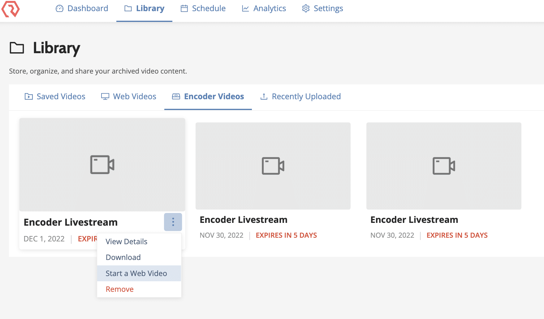 Videos, die auf dem Server abgelegt werden, können per Zeitplan zum Live- Event auf der eigenen Plattform oder auf verlinkten Kanälen ausgespielt werden. Bei dieser Art der geplanten Wiedergabe ist das eigene Streaming-Equipment zum Ingest nicht mehr nötig und es gibt eine Fehlerquelle weniger.