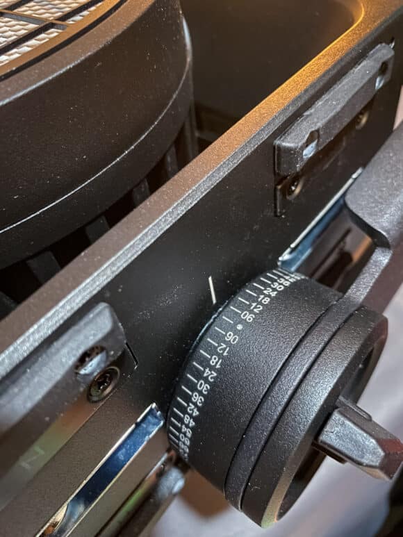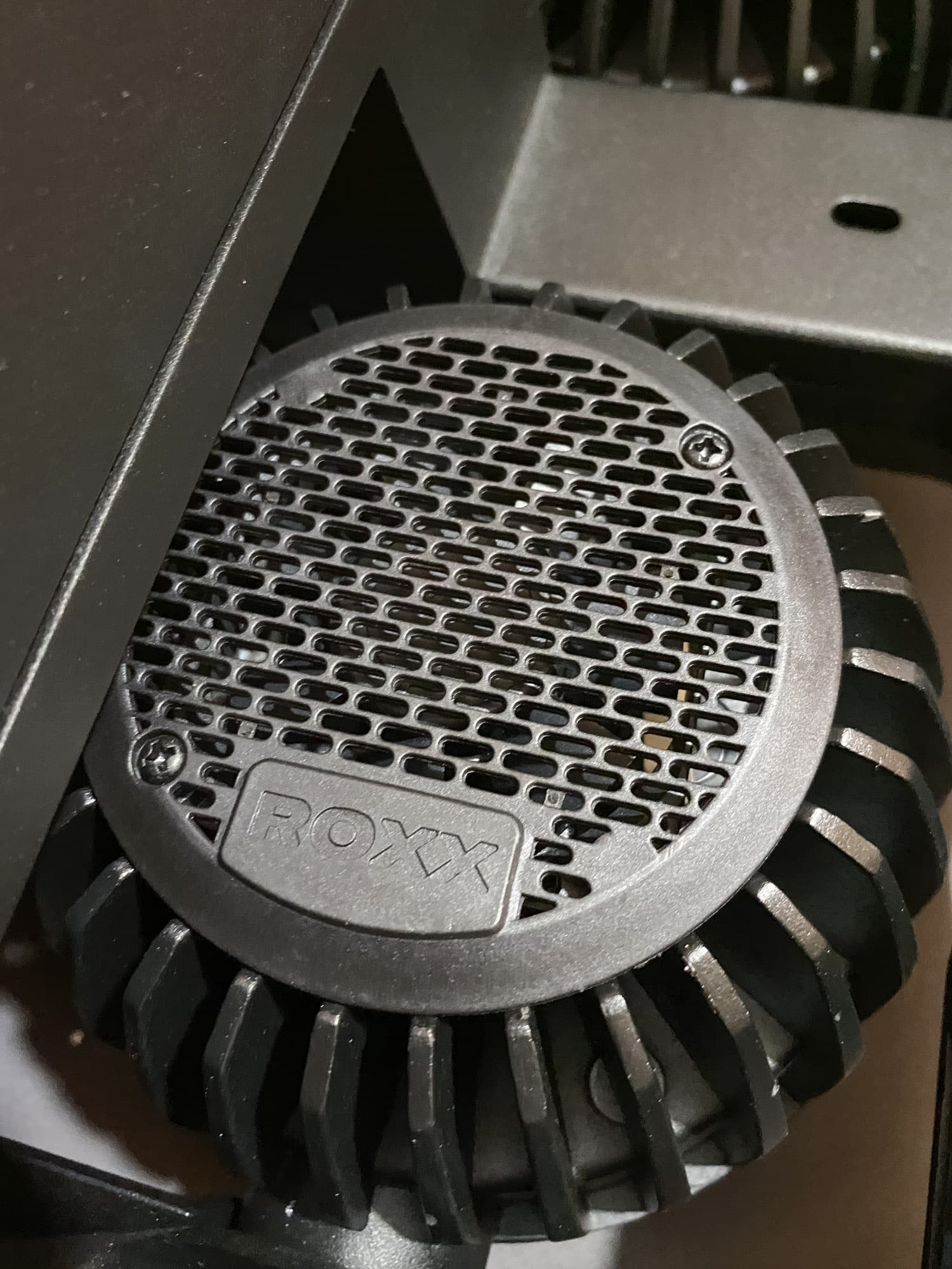 Zur Aufrechterhaltung der vom Hersteller zur Verfügung gestellten Leistung ist jedes einzelne Leuchtmittel mit einem eigenen Lüfter ausgestattet worden, die über das geräteinterne Menü in vier Stufen (Off, Silent, Auto und max. Power) regulierbar sind und damit für die benötigte Frischluftzufuhr Sorge tragen. Die Steuereinheit auf der Rückseite des Geräts kommt gänzlich ohne Belüftung aus.